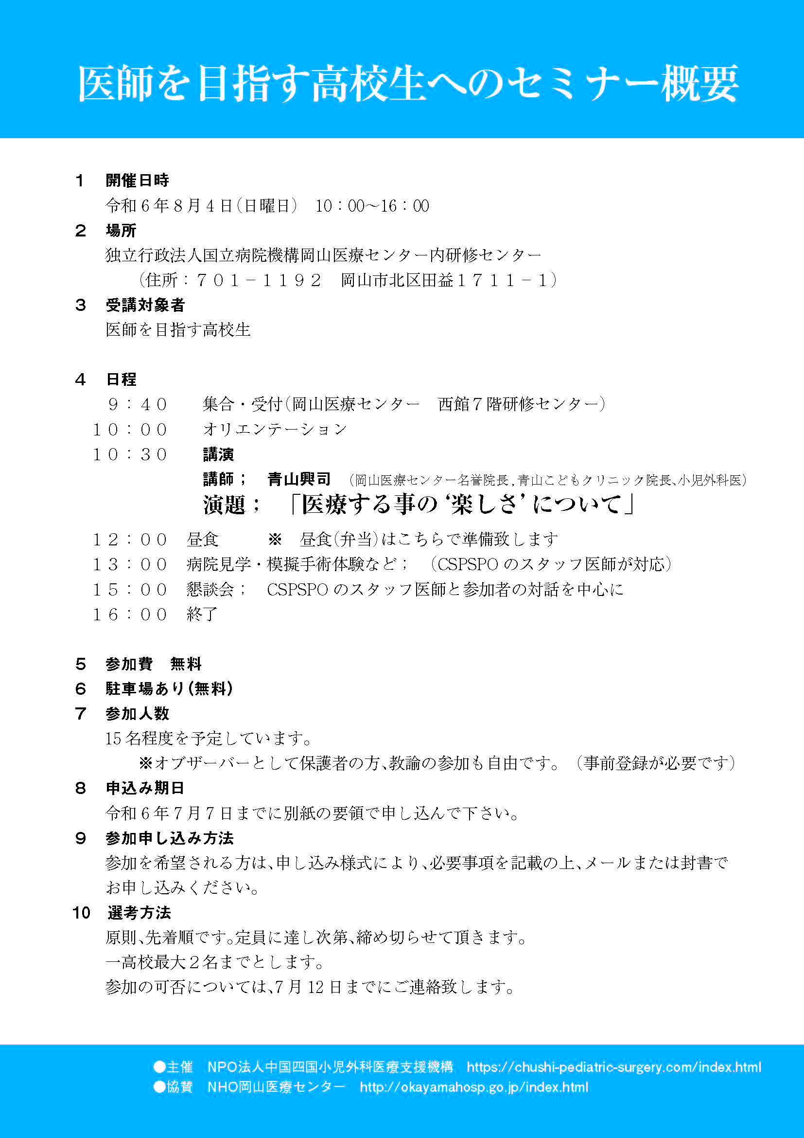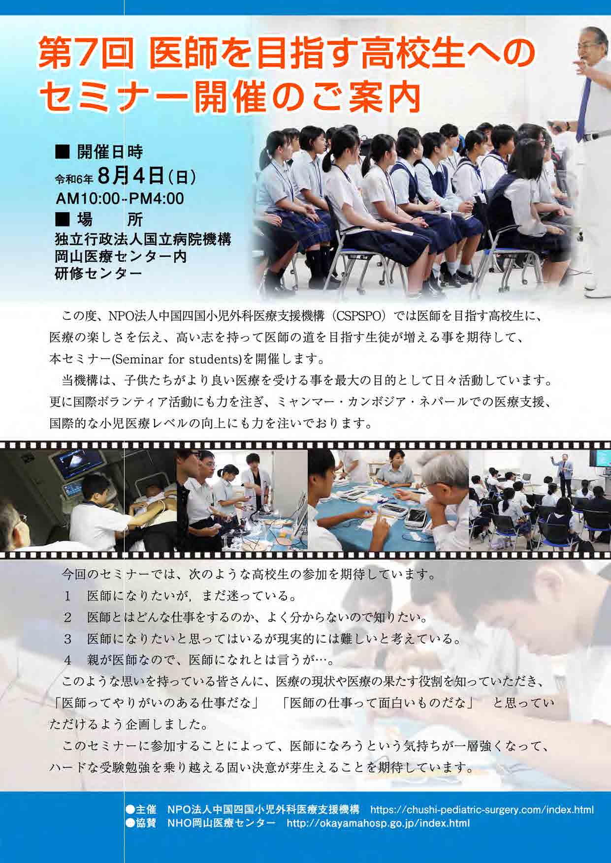2024年5月7日 第7回医師を目指す高校生へのセミナー開催のご案内を掲載しました。