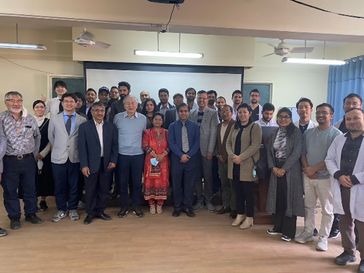 ネパールでは、以前から青山先生と交流のある現地小児外科医のポカレル医師が所属するトリブバン大学教育病院を訪問し、その他の病院の医師らを交えて、小児外科・小児泌尿器科領域において最も治療に難渋する疾患の一つである総排泄腔遺残症について講義、術式紹介、症例提示といった内容でカンファレンスを行いました。ネパールは人口3000万人程度のインドの北東部に位置する国であり、近年徐々に発展はしていますが、いまだ貧富の格差と乏しい医療環境が大きな問題となっています。複数の国々が医療支援を行っていますが、日本もその中の一つであり、多くの方に親日感情を持って頂いています。トリブバン大学教育病院の医療設備拡充に日本の橋本元総理が深く関与しておられ、現地医師たちも我々日本人医師を親切に迎え入れていただきました。ネパールには小児外科医が診療を行っている病院が5つしかありませんが、その中で最も手術症例数の多いカンティ小児病院がトリブバン大学教育病院に隣接しています。カンファレンスを通して、カンティ小児病院の小児外科部長と交流することができ、カンファレンス後に病院の見学をさせていただきました。ネパールには貧困や医療資源の不足から治療を受けられない子ども達が多くいます。今後はNPO法人中国四国小児外科医療支援機構とトリブバン大学教育病院やカンティ小児病院で協力体制をとり、実際に手術などを通して技術指導、医療支援を行うことができればと考えています。