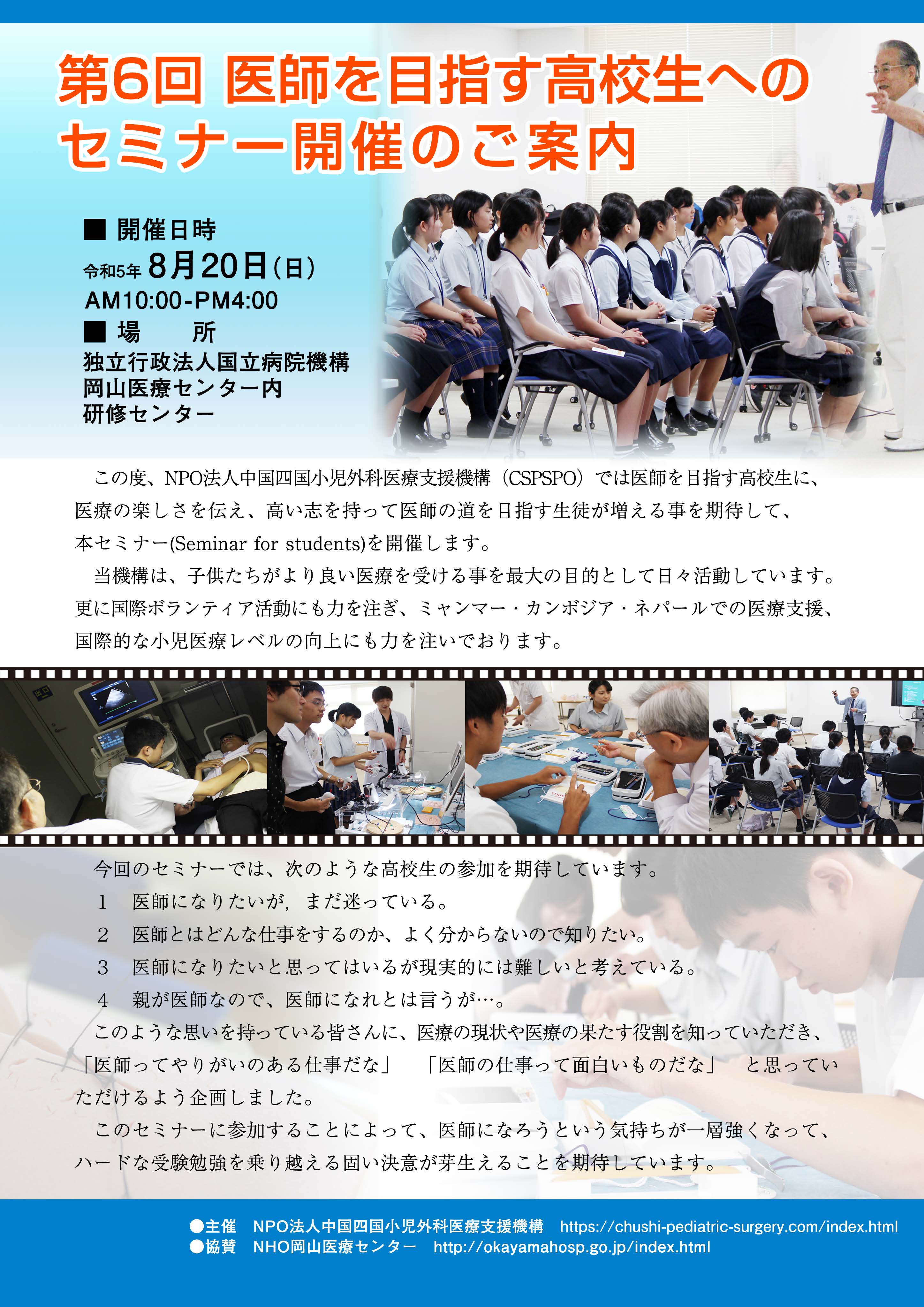2023年5月15日 第6回医師を目指す高校生へのセミナー開催のご案内を掲載しました。