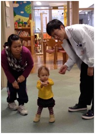 | お風呂が大好き | 8) 帰国当日、病室最後の散歩 (豊岡先生と) |