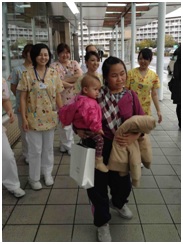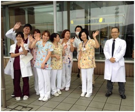 9) 病院前での帰国見送り(1月17日) 看護師さん達に見送られて |
