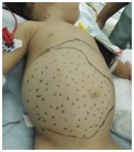 来院3ヶ月前頃、母親がお風呂に入れている際に腹部の腫瘤に気づき、ヴィエンチャンの病院を受診、腎臓癌疑いと告げられ、怖くなり幾つかの病院を受診したそうです。精査・治療を進められたが、金銭的な問題により中断していました。その時、吉岡医師と出会い、山に連絡が入り、それから1ヶ月以内に治療が開始されました。VISA取得などの事を考えれば驚異的なスピードで治療が開始された事になります。