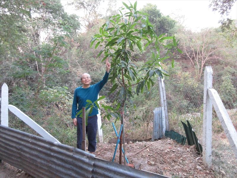 | 10 宿舎にマンゴーを記念植樹(2015.6) | 11 半年で1.5倍に成長したマンゴー(2015.12) |